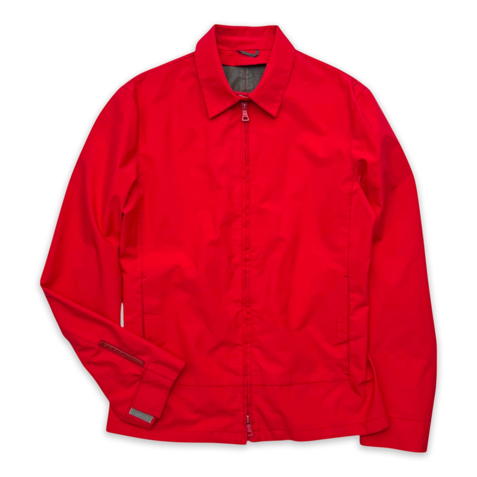 nylon blend prada sport jacket with dual zips, Velcro collar, sleeve cuffs and front pockets.